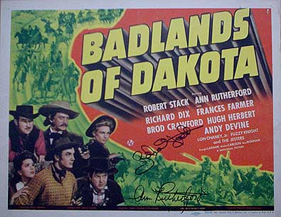 Four of the colorful characters of the old west are principals in the story of Universal's "Badlands Of Dakota," epic Western starring Bob Stack and Ann Rutherford.