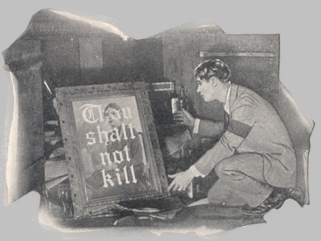 The Chinese empties her pretty money bag. Dollar bills - one... three... five -- flutter to the floor. Nothing! Dan is after the $30,000 rope of pearls, and despite her struggles tears it from her neck. Then Sally points to a sensational article in the day's paper stating that U. S. agents are on the trail of a beautiful Eurasian who got into the country from Molokai Island. She is that outcast. Like a flash Dan realizes that she has branded him forever! In a fury he whips out his revolver and breaks the awful commandment, THOU SHALT NOT KILL.