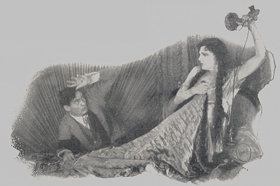 In his wife's bedchamber Dan tells Mary of his evil case. Recoiling with horror she snatches up a weapon and cries desperately: "If you touch me, I'll kill you!" The officers come to arrest him. Then Mary, downing her fear, makes the supreme sacrifice. She pulls the distracted Dan under the clothes and hides him with her body. The officers put off by a ruse, he is enabled to attempt escape to Mexico.